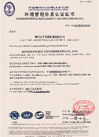 環(huán)境管理體系認證證書